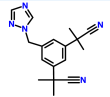 阿那曲唑化学名称为α,α,α′,α′-四甲基-5-(1H-1,2,4-三氮唑-1-甲基)-1,3-苯二乙腈,为白色或类白色结晶性粉末;无臭,味苦。在乙腈或乙酸乙酯中易溶,在乙醇中溶解,在水中几乎不溶。临床上用于绝经后妇女的晚期乳腺癌治疗。