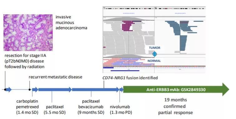 NRG1-CD74融合突变, GSK2849330单抗靶向治疗(ERBB3)延长19个月!