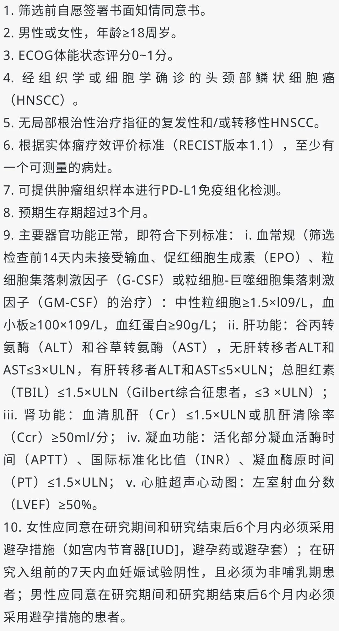 评估SCT-I10A联合标准化疗对比安慰剂联合标准化疗一线治疗复发性和/或转移性头颈部鳞状细胞癌的Ⅲ期临床研究