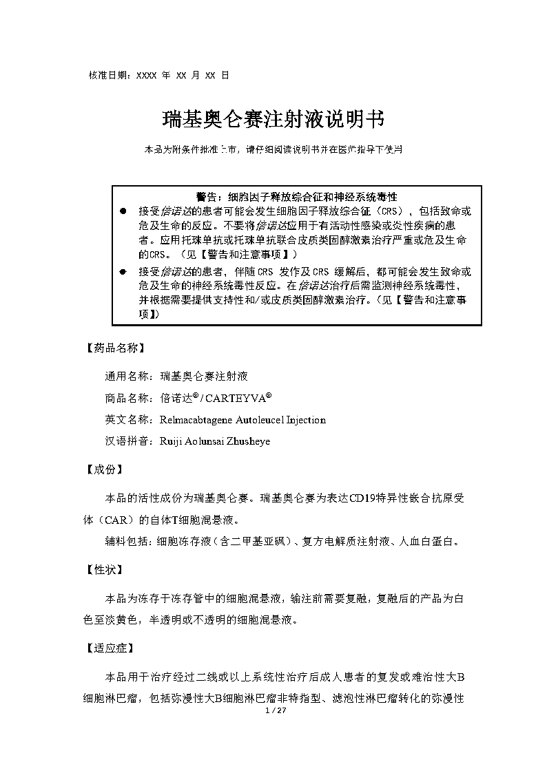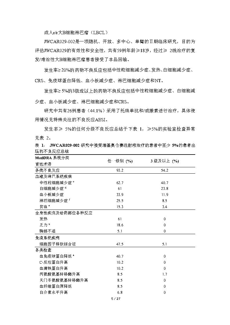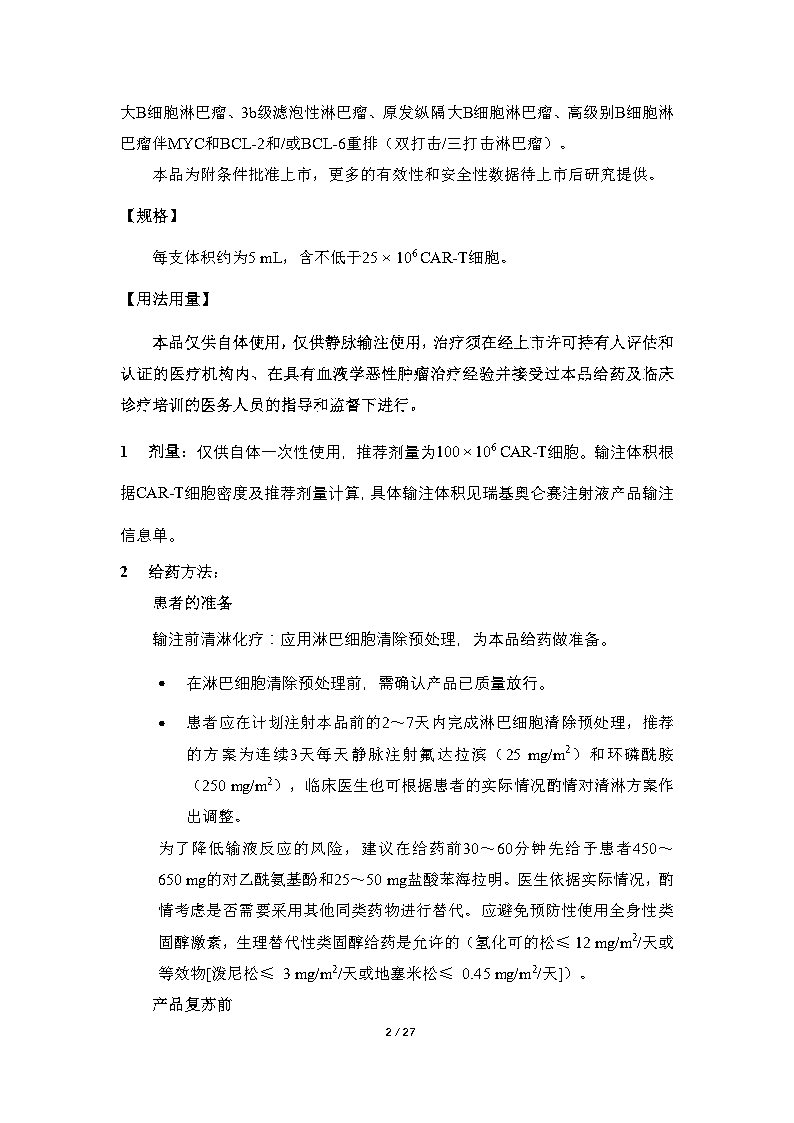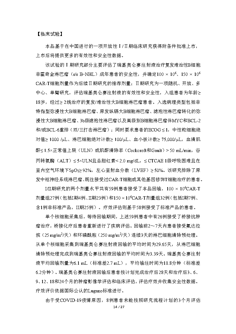 适应症:大B细胞淋巴瘤 B细胞急性淋巴细胞白血病