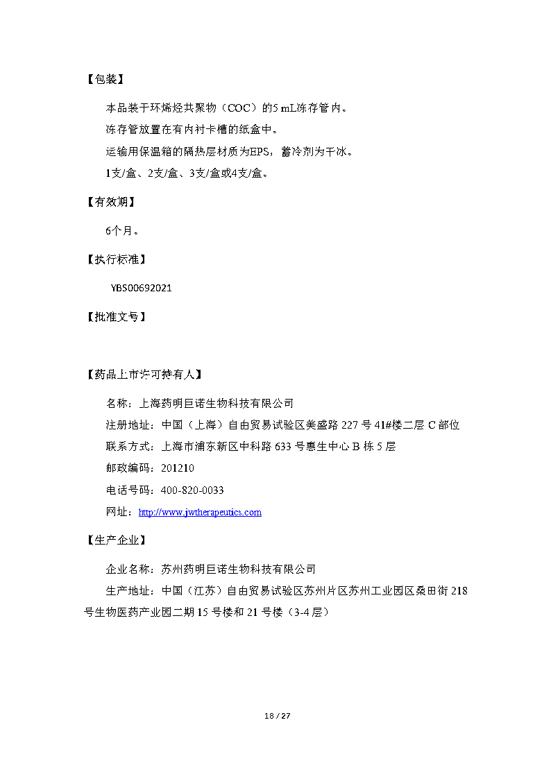 研发公司:药明巨诺