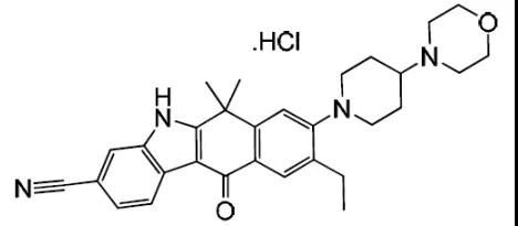 化学名称:9-乙基-6,6-二甲基-8-[4-(吗啉-4-基)G 哌啶-1-基]-11-氧代-6,11-二氢-5H-苯并[b]咔唑-3-腈盐酸盐。