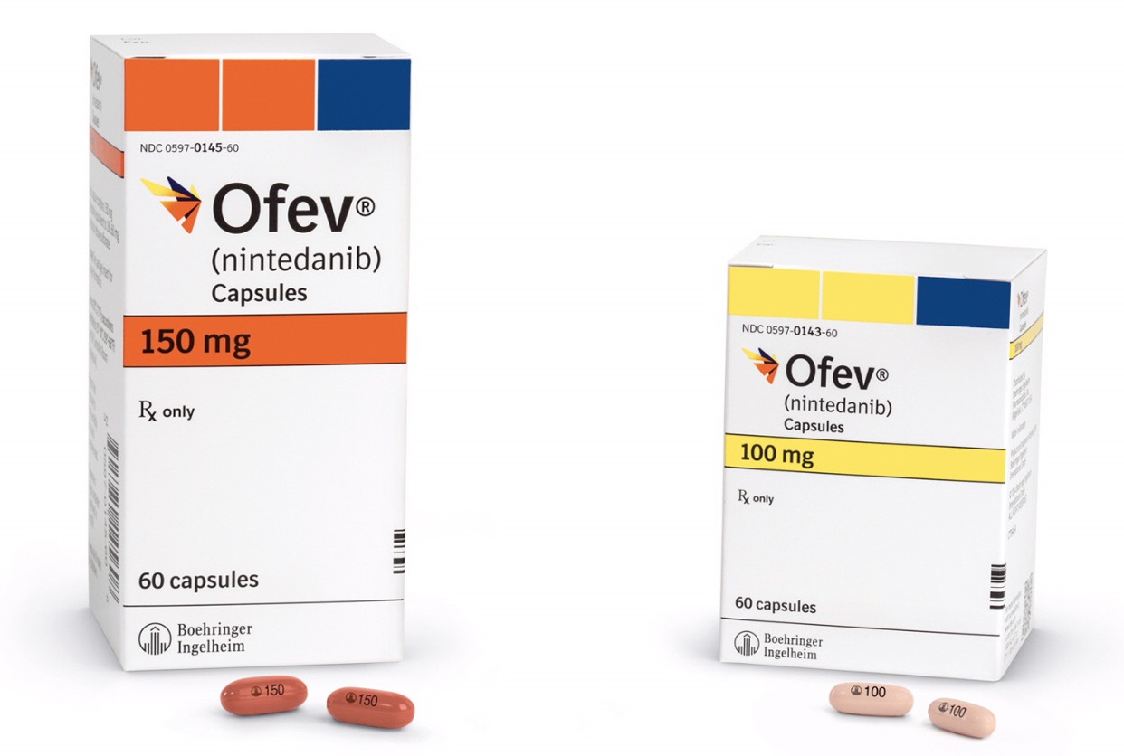 尼达尼布(Nintedanib),是一种口服药物,用于治疗特发性肺纤维化以及与某些类型的非小细胞肺癌的其他药物一起使用。2020年初尼达尼布被批准在美国用于治疗具有进行性表型的