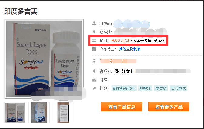 据了解印度多吉美价格官方价格是1200元左右人民币,(印度MAX医院标价)但是由于专利权限制的问题,印度多吉美药品在中国是没有办法上市的,想要买到印度多吉美就需要出国到印度医院