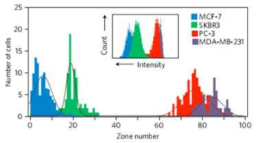 作为目前唯一通过FDA认证的CTCs分离与计数系统,CellSearch,是采用外面包被了特异性抗体抗EpCAM(上皮细胞粘附因子)的免疫磁珠,通过抗原抗体作用,与血液中表达EpCAM的CTCs结合,并进一步通过荧光反应识别。虽然该技术有较高的灵敏度,但其仍存在着一些缺点,如未实现全自动分选、假阳性比率高、预处理环节损失大量目标细胞,以及富集后的CTCs没有生物活性等。