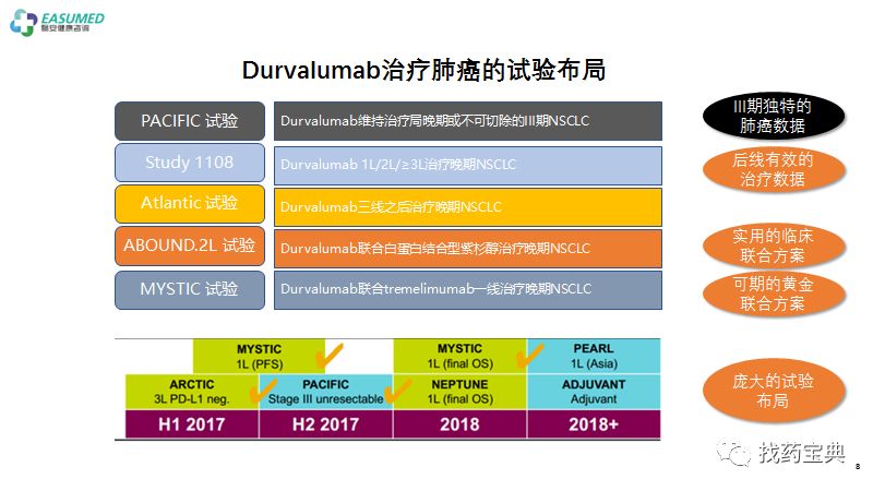 Durvalumab目前在各癌种有着庞大的临床试验布局,尤其在肺癌方面。