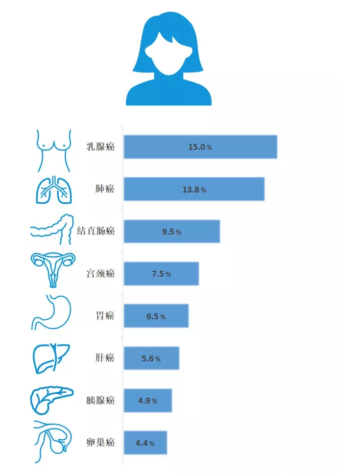 图7:女性死亡率最高的8类肿瘤