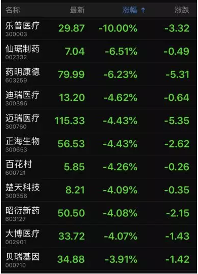 部分12月6日跌幅较大的医药股