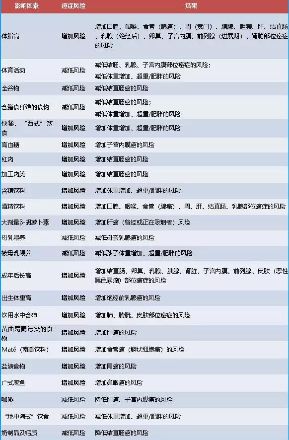 表1 影响癌症风险的有力证据