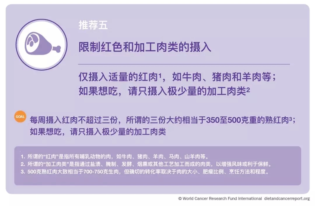 来自CUP的有力证据表明,红肉和加工肉类是结肠直肠癌的原因之一;根据本条建议摄入的红肉可以平衡利弊。