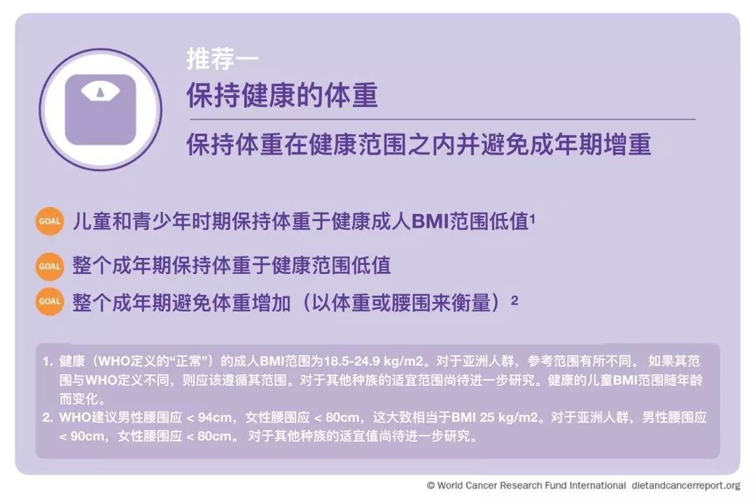 以这些证据为基础,WCRF给出了十条预防癌症的推荐。