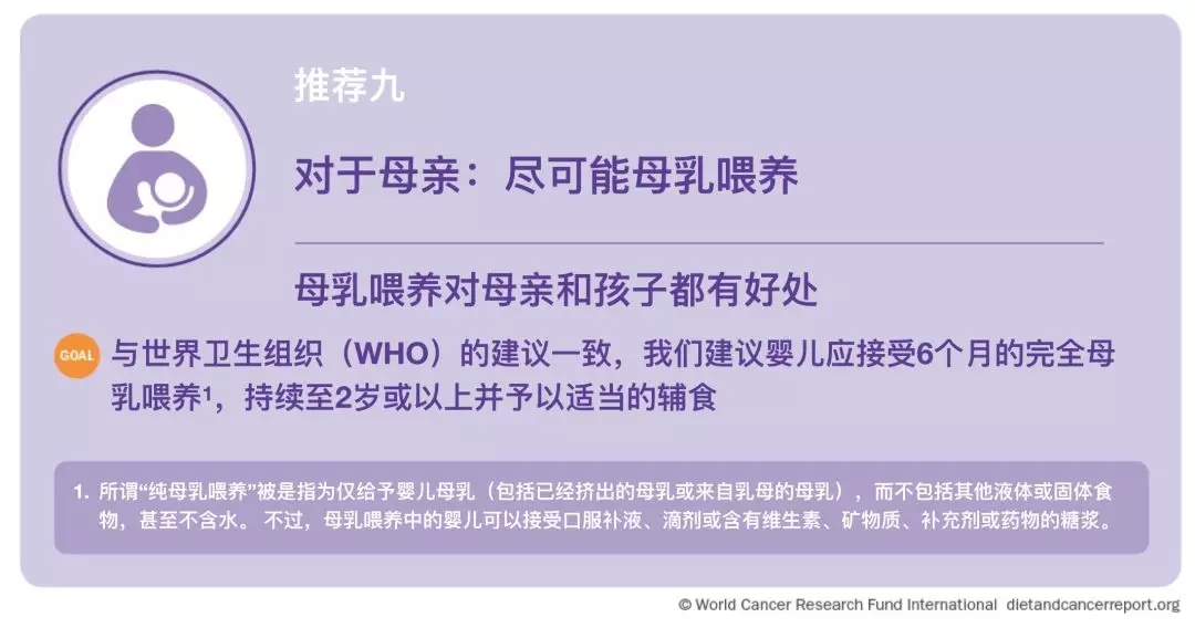 来自CUP的有力证据表明,母乳喂养可以降低母亲的乳腺癌风险;也有助于降低儿童体重增加,超重/肥胖的风险。