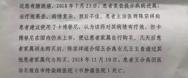陈医生在建议使用卡博替尼的时候,明确告诉了患者家属此药在国内没有上市。患者家属多人有医学背景,不可能不清楚这药在法律意义上属于“假药”。