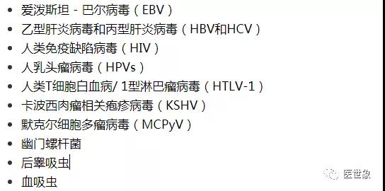 某些传染因子,包括病毒,细菌和寄生虫,可能会导致癌症或增加癌症形成的风险。如: