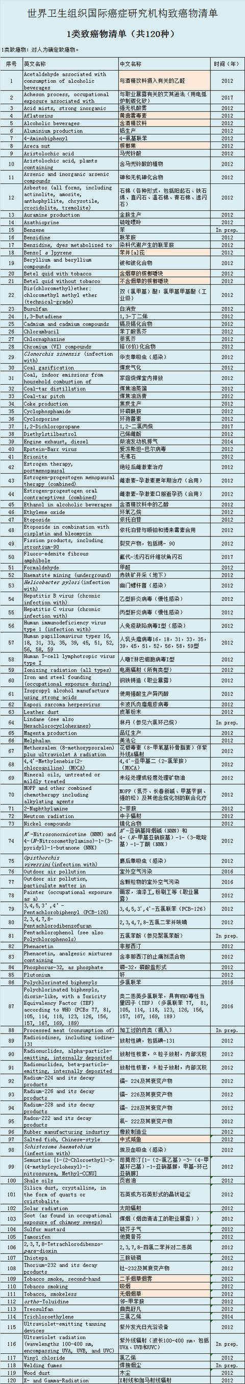 1级致癌物最新版本