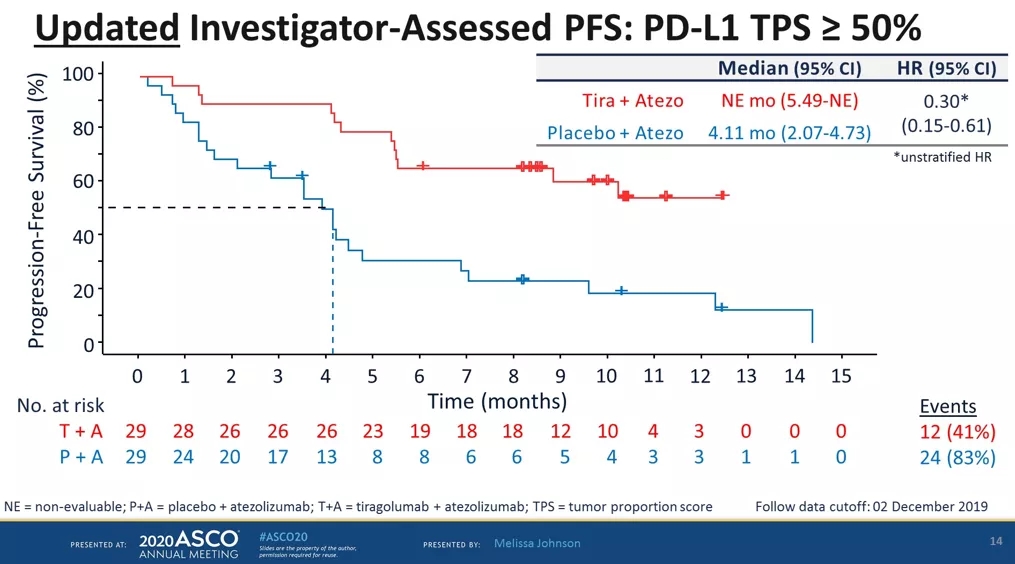 ▍PD-L1高表达人群可能更能从Tiragolumab+阿替利珠单抗联合治疗中获益