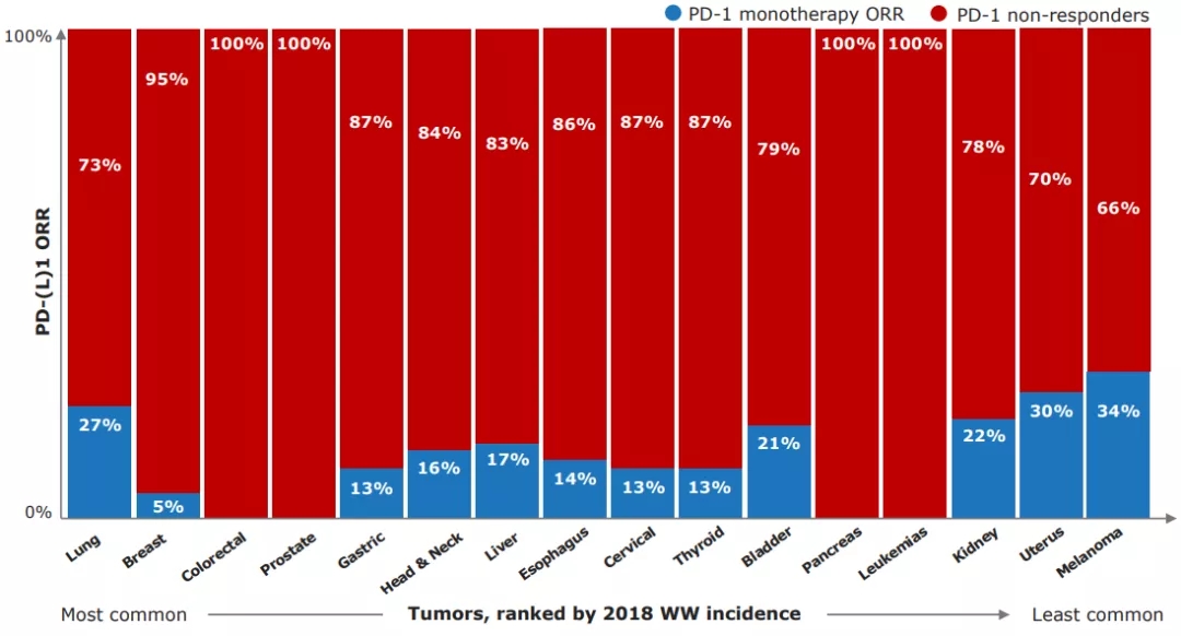 图1. 不同瘤种中PD-1/PD-L1抑制剂患者获益情况