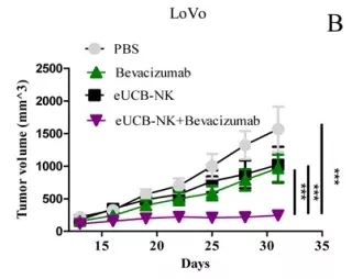 无论是单独应用eUCB-NK细胞,还是与贝伐单抗一起用于治疗结直肠癌,都是不错的新治疗选择。
