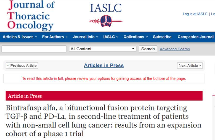 近日,在胸部肿瘤学杂志(JTO)上公布的最新研究中,德国默克(Merck KGaA)的在研新药M7824公布的最新临床数据引起轰动!这是一款在研的双功能性免疫疗法,能同时靶向PD-L1通路和TGF-ß通路,有望唤醒和恢复机体的抗肿瘤反应,从而起到控制肿瘤生长的效果。