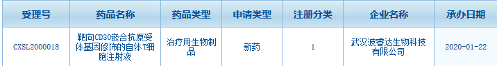 1月22日,其获得国家药品监督管理局(NMPA)药品审评中心(CDE)受理(受理号:CXSL2000018)。