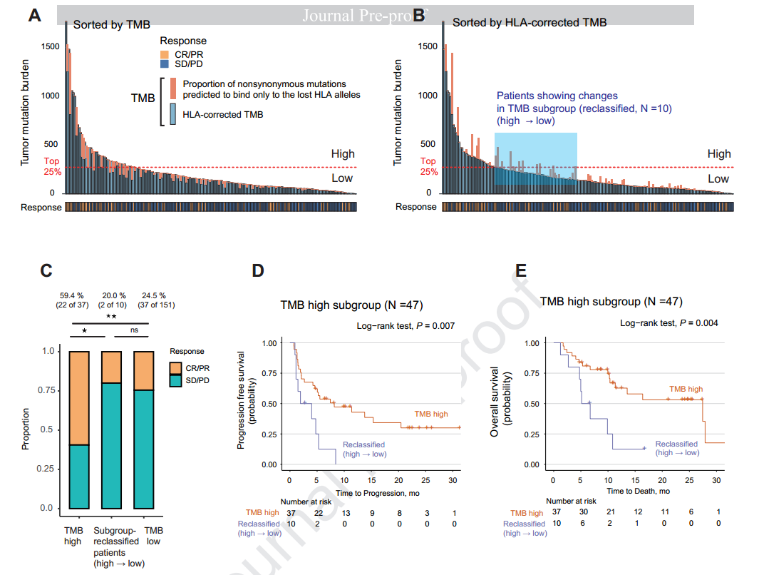 2.通过HLA校正的TMB算法,即TMB联合HLA LOH,改善了TMB对生存期预测的准确性;
