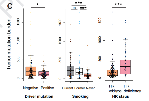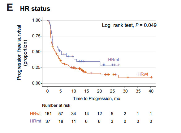 HR缺陷在37个患者中观察到,这些患者的TMB更高并且拥有更长的PFS。多变量模型分析中,在校正年龄、性别、ECOG评分、吸烟、病理类型、PD-L1表达后,HRD仍然是ICIs应答的独立预测因子。