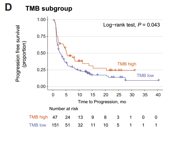 与既往研究一致,对免疫治疗产生应答的患者的TMB显著高于无应答患者(中位TMB 194 vs 131 mutations)。