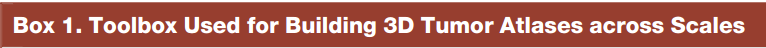 癌症3D图谱是关于细胞状态、类型、程序和细胞状态转变的全面、概括性的内容,将包含肿瘤细胞相互之间的物理位置、支持基质和细胞外基质等信息。总体而言,第一代图谱可能包括一系列类似肿瘤的交互式2D和3D可视化,并将关键的分子和细胞特征与临床数据元素和患者预后联系起来。而二代肿瘤图谱需要从多参数数据集中获得更多信息,以有意义地表达描述特定肿瘤分的遗传、分子、超微结构、细胞和组织学特征的多维度组合(图2)。