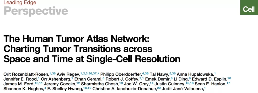 2020年4月16日,Broad研究所Aviv Regev与多个实验室以及人类肿瘤网络图谱(Human Tumor Atlas Network,HTAN)联盟合作在Cell发表观点文章The Human Tumor Atlas Network: Charting Tumor Transitions across Space and Time at Single-Cell Resolution,从时间-空间方面在单细胞分辨率上对肿瘤发展过程进行阐述和总结以建立人类肿瘤网络图谱。