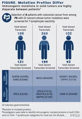 Rosenberg对常见胃肠道癌的患者的研究证明了不同患者之间免疫应答的独特性。通过对75位患者的生物学样本进行全外显子测序,确定了124个新抗原的TIL。他们发现,83%(62)的患者培养的TIL能够试别自体肿瘤细胞表达的1.6%的体细胞突变。99%的新抗原决定簇在每个癌症患者中都是完全不同的。因此,必须从每个癌症患者中取出细胞,确定哪些细胞可以真正识别和攻击癌症,将这些细胞进行培养,扩增才能起到治疗效果,这是非常复杂的。