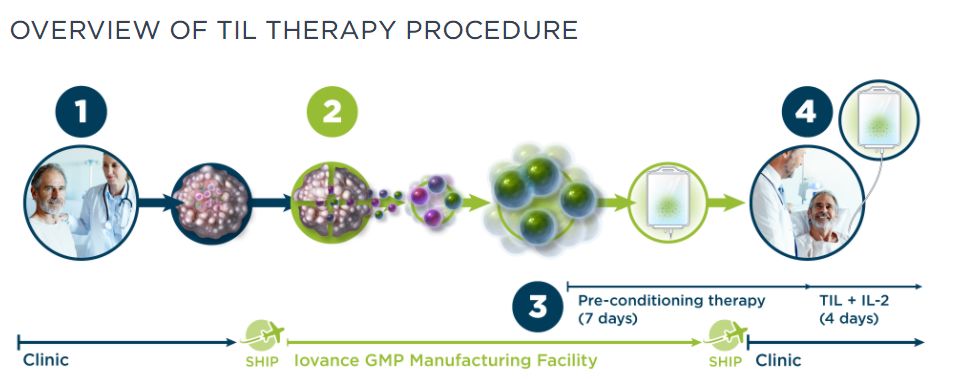 患者在TIL输注后立即接受多达6剂白细胞介素2(IL-2),来支持患者体内TIL的生长和激活。