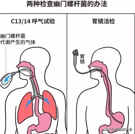 最常用的手段就是碳13和碳14呼气试验,简单便捷准确无创。