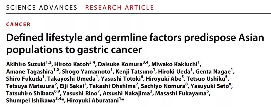 近日,日本东京大学等研究机构的研究人员合作,在 Science 子刊 Science Advances 上发表题为:Defined lifestyle and germline factors predispose Asian populations to gastric cancer 的研究论文。