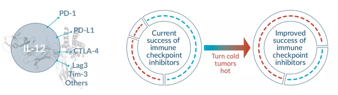 根据肿瘤活检结果,IL-12可以在肿瘤微环境中上调了多种免疫检查点抑制剂,这表明IL-12除了具有作为单药疗法的潜力,还非常适合与免疫检查点抑制剂联合使用,增强免疫检查点抑制剂的治疗效果。
