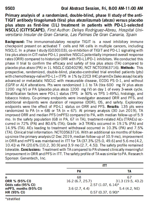 TIGIT单抗联合T药一线治疗PDL1阳性晚期NSCLC中期结果公布,开拓低毒高效的免疫组合方案