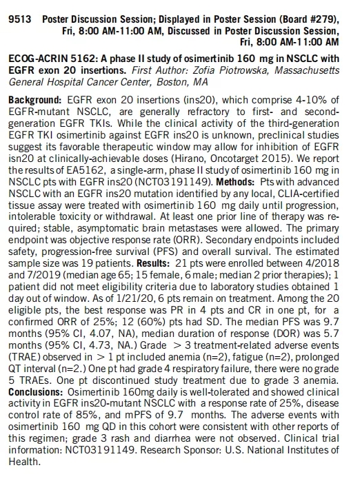 奥希替尼160mg挑战EGFR最难治突变20ins,有效率25%
