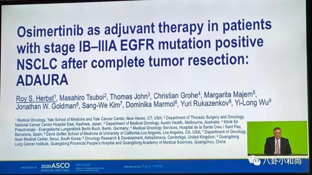本次EGFR-TKI靶向方面一重磅炸弹就是来自奥希替尼作为早期肺癌术后辅助治疗的ADAURA研究。在大会公布前,5月28日,阿斯利康官网提前公布了奥希替尼III期临床试验ADAURA重磅结果。这一试验探索了奥希替尼作为辅助疗法,治疗接受根治性肿瘤切除后的早期(IB、II和IIIA)非小细胞肺癌(NSCLC)患者的疗效(携带EGFR基因突变)。这是继CTONG1104(ADJUVANT)易瑞沙辅助治疗(对于EGFR突变阳性肺癌术后患者,使用吉非替尼作为辅助治疗可显著延长疾病复发时间约10个月)成功后的另一研究,为EGFR-TKI进军辅助治疗再添一臂!