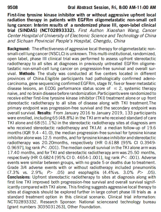 EGFR突变寡转移肺癌,靶药基础上+放疗,PFS延长8个月!