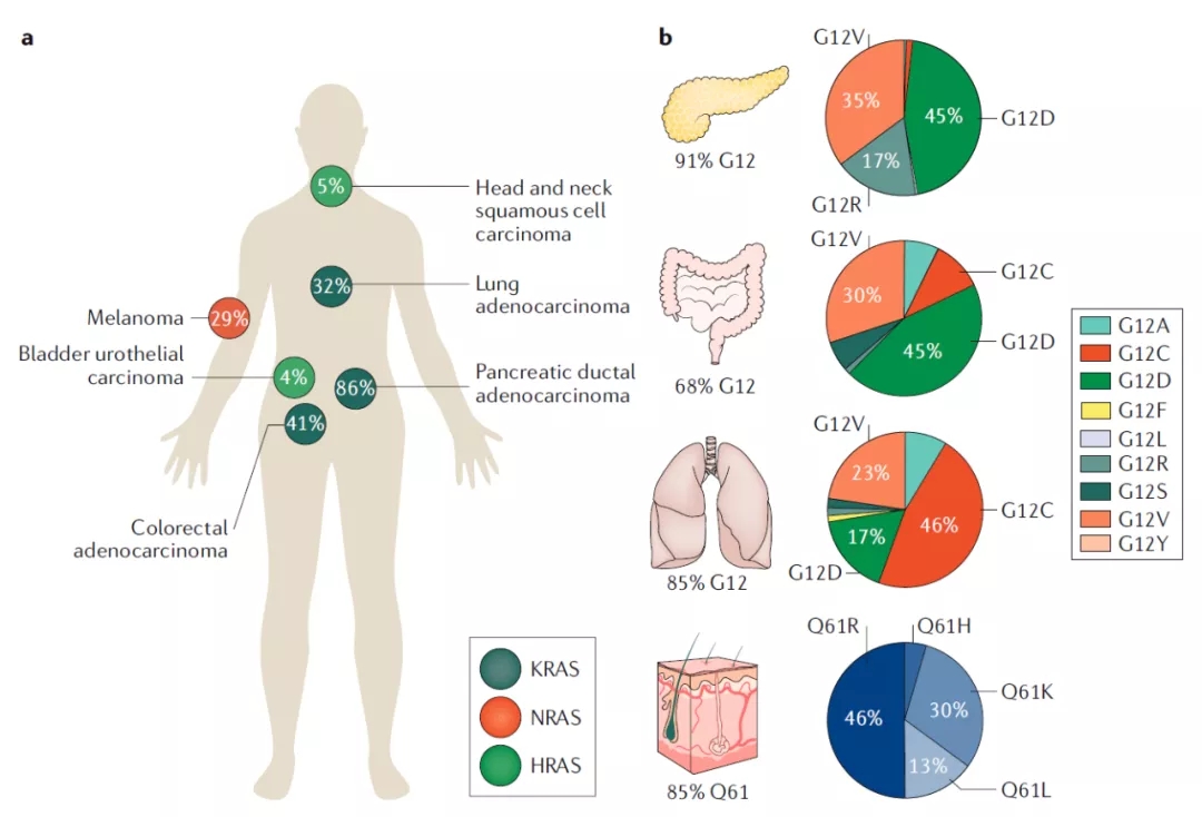 KRAS基因编码时使用不同4号外显子,从而产生两种剪接变体—— KRAS4A和KRAS4B。长期以来,KRAS4B被认为是主要的剪接变体,因为它在人类癌症中普遍存在并且高度表达。