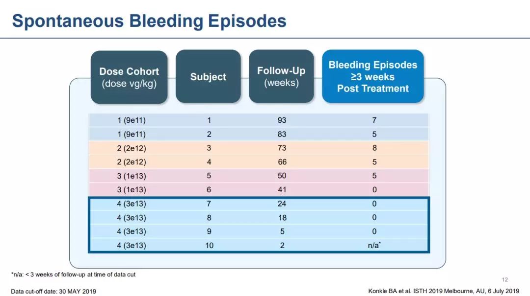 注:文中数据和截图PPT数据不同的原因是ISTH会议数据收集截止期为5月30日(即PPT数据截点),而文中所采用的数据截点为6月18日(即公司7月公开试验数据截点)。