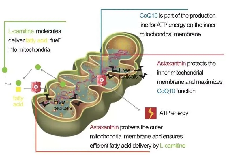 虾青素的各种功效是基于虾青素被体内所有细胞所吸收,并作为一种强大的抗氧化剂和抗炎因子所致。因此,我们看到了虾青素在不同领域的积极作用。其他取得了有希望的结果的领域:男性生殖健康-提高精子的功能;胃健康-减轻胃部炎症,从而减少消化不良症状;II型糖尿病-对胰岛素产生细胞的保护;心脏和血管健康-减少动脉壁炎症和保护血脂免受氧化。 参考文献:1. Park JS, et al. Astaxanthin modulates age-associated mitochondrial dysfunction in healthy dogs. J Anim Sci 2013; 91(1):268-275. 2. Earnest CP, et al. Effect of astaxanthin on cycling time trial performance. Int J Sports Med. 2011; 32(11):882-888.3. Aoi W, et al. Astaxanthin improves muscle lipid metabolism in exercise via inhibitory effect of oxidative CPT I modification. Biochem Biophys Res Comm 2008; 366:892-897.4. Tominaga K, et al. Cosmetic benefits of astaxanthin on humans subjects. Acta Biochimica Polonica 2012; 59(1): 43-47.5. Tominaga K, et al. Protective effects of astaxanthin on skin deterioration. J Clin Biochem Nutr 2017; 61: 33-39.6. Camera E, et al. Astaxanthin, cantaxanthin and beta-carotene differently affect UVA-induced oxidative damage and expression of oxidative stress-responsive enzymes. Exp Dermatology 2009; 18(3): 222-231. 7. Park JS, et al. Astaxanthin decreases oxidative stress and inflammation and enhanced immune response in humans. Nutrition & Metabolism 2010; 7:18. 8. Baralic I et al. Effect of astaxanthin supplementation on salivary IgA, oxidative stress and inflammation in young soccer players. Evidence-Based Complementary and Alternative Medicine 2015; ID 783761. 9. Nagaki Y, et al. Effect of astaxanthin on accommodation and asthenopia. Folia Ophtalmologica Japonica 2010; 3(5): 461-468.10. Shiratori K, et al. Effect of astaxanthin on accommodation and asthenopia. Efficay identification study in healthy volunteers. J Clin Ther Med 2005; 21: 637-650.11. Hongo N, et al. Randomized controlled trial of the anti-fatigue effects of astaxanthin on mental and physical loads simulating daily life. J Clin Ther Med 2016; 32(7): 577-591.12. Katagiri M, et al. Effects of astaxanthin-rich Haematococcus pluvialis extract on cognitive function: A randomized, double-blind, placebo-controlled study. J Clin Biochem Nutr 2012; 51: 102-107.