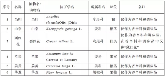当归等6种新增按照传统既是食品又是中药材的物质目录(2019年第8号)