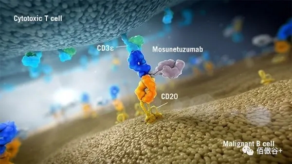 罗氏开发了两款CD3/CD20双抗,其中CD20-TCB(RG6026)双抗即采用了TCB的结构,包含2个抗CD20的Fab和1个抗CD3的Fab。下图为罗氏1:1的CD3/CD20双抗Mosunetuzumab。两款CD3/CD20早期临床中都表现出强劲疗效。