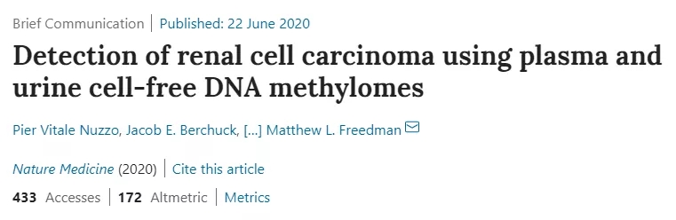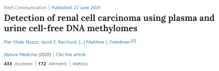 达纳-法伯的医学肿瘤学家马修·弗里德曼(Matthew Freedman) 博士说:“非侵入性液体活检是一种寻找肿瘤进入血液或其他体液中与癌症相关的DNA的方法,作为早期发现某些肿瘤的手段,正在迅速向临床应用发展。然而,肾癌是最难检测的肿瘤之一,因为它不像其他肿瘤那样脱落那么多的DNA。这就是这项测试表现非常好的地方,因为它可以识别少量肿瘤脱落DNA中的异常模式。这是一个早期阶段的原理证明。”