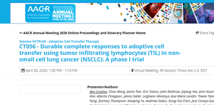 美国时间4月27日,在今年的AACR会议上,一项由美国知名癌症中心莫菲特癌症研究中心(H. Lee Moffitt )开展的基于TIL细胞治疗的Ⅰ期临床结果公布: