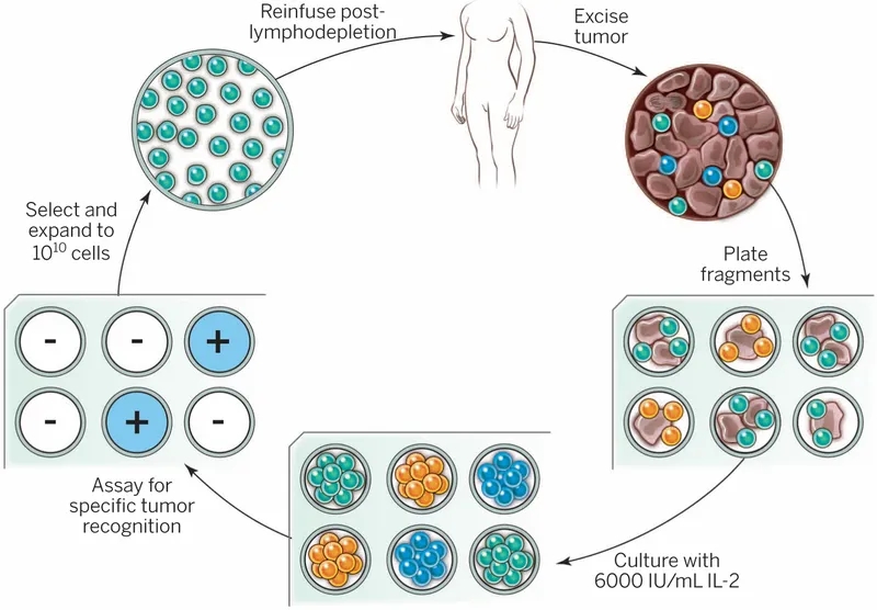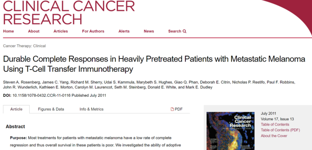 2011年,美国国家癌症研究所(NCI)外科主任Steven A. Rosenberg团队发表在国际顶级期刊《Clinical cancer research》上的对于转移性黑色素瘤的2期临床研究显示,TIL治疗黑色素瘤患者的客观缓解率(ORR)为56%,完全缓解率(CR)高达24%。并且研究表明,浸润肿瘤的免疫细胞数量与患者的生存机会成正比。黑色素瘤是具有相对高的突变负荷的癌症之一,肿瘤被这些免疫细胞润,参与早期试验的一些患者对这种疗法的反应持续了十多年。