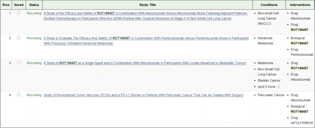 3、https://clinicaltrials.gov/ct2/results?recrs=&cond=&term=RO7198457&cntry=&state=&city=&dist=
