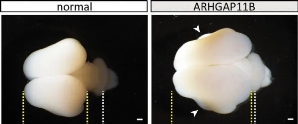 研究人员认为,这些结果表明,人类特有的ARHGAP11B基因可能在人类进化过程中导致了新大脑皮层的扩展。