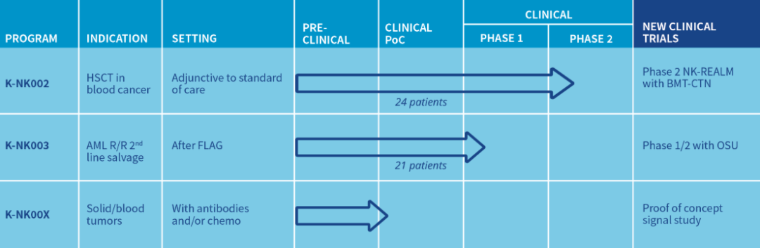 K-NK00X:目前正在作为治疗方法进行血液瘤和实体瘤的临床前研究。