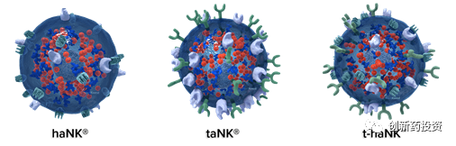 但是,但是,此处要注意,上列表格并不全面!原因在于,有些CAR-NK细胞疗法所使用的细胞名称中不含CAR-NK。。。比如NantKwest这家公司,看名字就知道是一家以研发NK细胞疗法为重点的公司,但人家的技术有自己的名字——haNK、taNK和t-haNK: